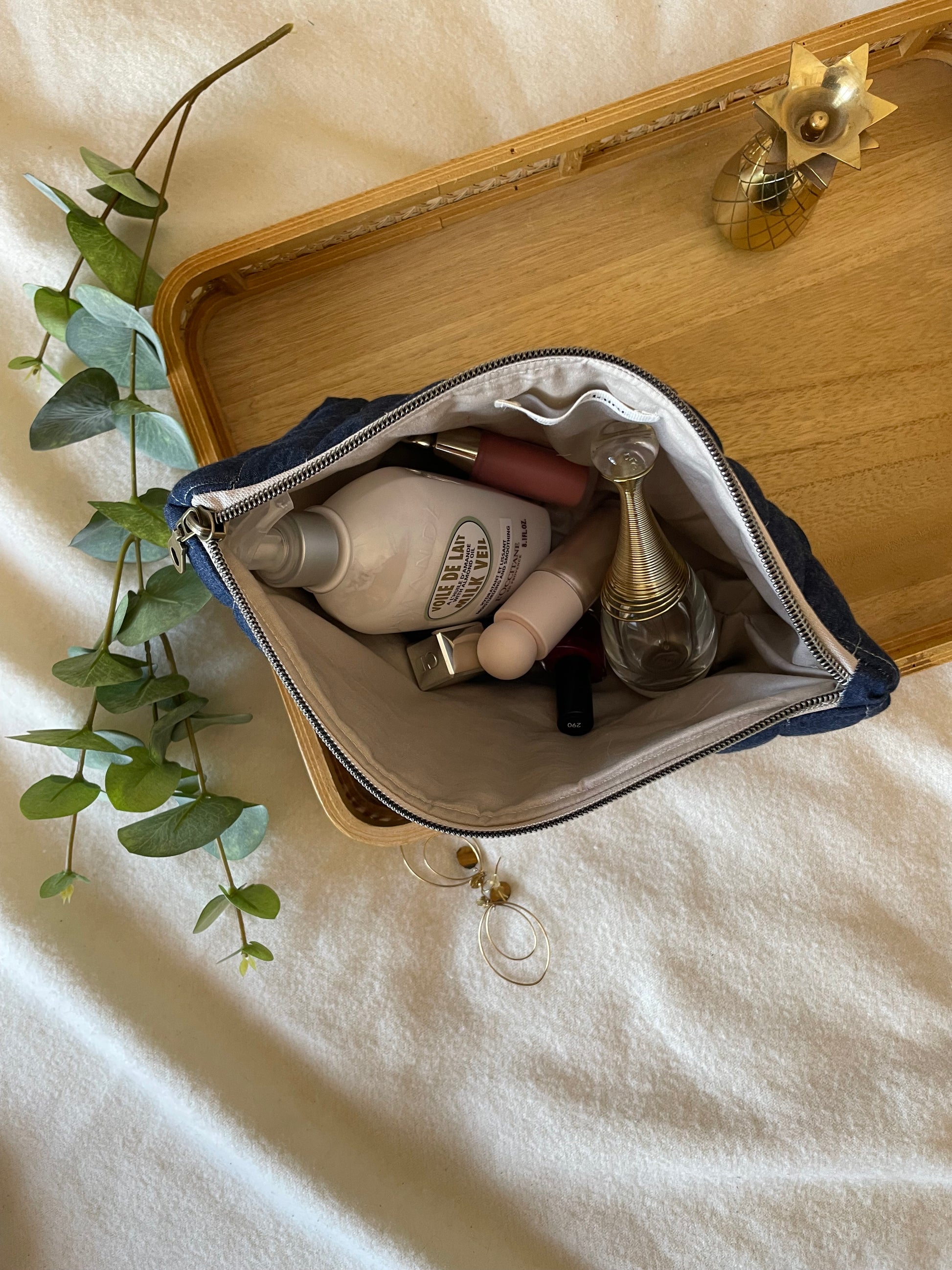 This chic triangular pouch combines style and functionality. With a quilted design, a secure zipper, and one interior pocket for better organization, it’s perfect for storing makeup or stationery. Compact and easy to carry, it adds a touch of sophistication to your daily routine.
